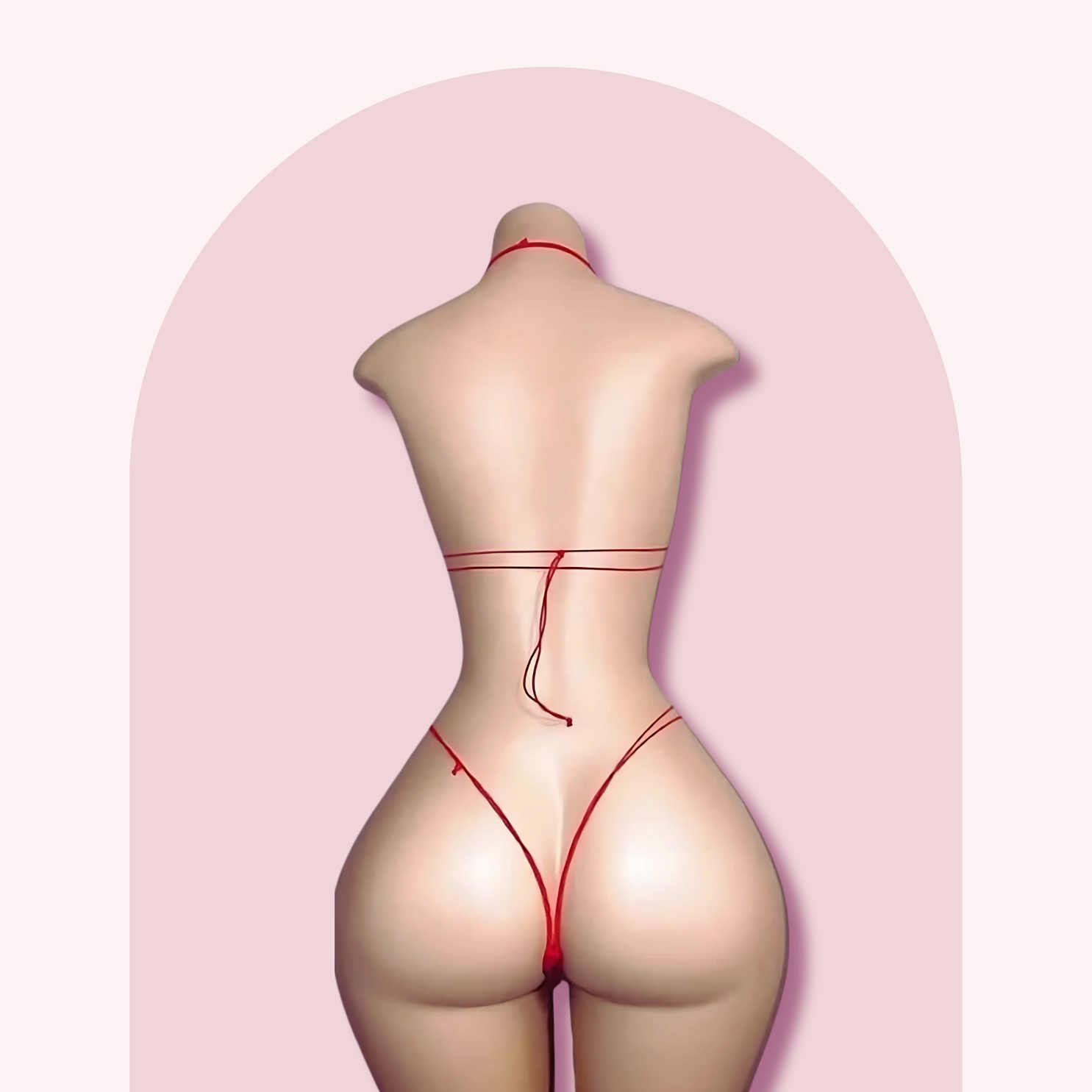 Designed with a bold glossy finish, this daring two-piece bikini features a halter top and cheeky bottoms that exude confidence. Perfect for pool parties or striking beachwear, this set ensures you steal the spotlight wherever you go.